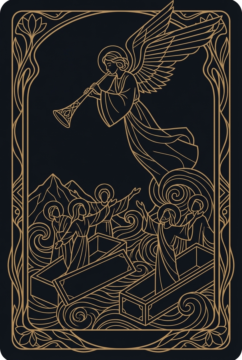 Judgement is one of the most recognizable cards in the tarot deck. In a reading, this card signals judgement arrives as a trumpet call from the deepest part of yourself — a summons to rise, to account for the life you have lived, and to step into the person you are meant to become. This is not the external judgment of a courtroom or a critic. Whether you have drawn Judgement in a love reading, career spread, or daily guidance pull, its meaning shifts depending on position and context. Below you will find the upright meaning, reversed interpretation, and specific guidance for love and career — everything you need to understand what Judgement is telling you right now. For a personalized interpretation of Judgement in your specific situation, try our free tarot reading tool.