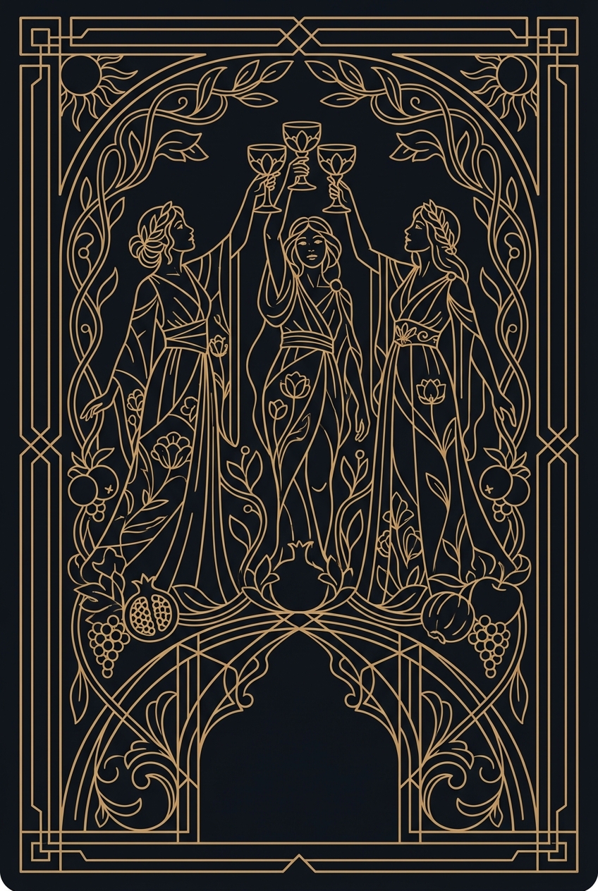 Three women raise their cups in a circle, garlands in their hair, harvest at their feet. The Three of Cups is celebration in its purest form — not performative joy posted for an audience, but genuine delight shared with people who truly know you. When this card appears, community and connection are your medicine. This is a card of friendship, reunion, and collective joy. It often surfaces when you need to stop going it alone and let your people in. Whatever you have been carrying — a victory, a burden, a question — sharing it with trusted friends will multiply the good and divide the hard. The Three of Cups insists that you were not designed to do life solo. Beyond friendship, this card can signal a creative collaboration that sparks all participants. Three minds in a room generating ideas, three voices harmonizing, three skill sets combining into something none could build alone. If you have been considering a group project or a collaborative venture, the Three of Cups endorses it with enthusiasm. There is a harvest quality to this card as well. The fruits at the women's feet suggest that effort has paid off and it is time to enjoy the results. You have earned this moment of lightness. Do not skip past it in pursuit of the next goal. Celebration is not a distraction from serious work — it is what makes serious work sustainable. Seek out gatherings, accept invitations, host the dinner party. The connections you nurture now will become your support system in the chapters ahead. The Three of Cups knows something you might forget: the people who dance with you in the good times are the same ones who carry you through the hard ones.